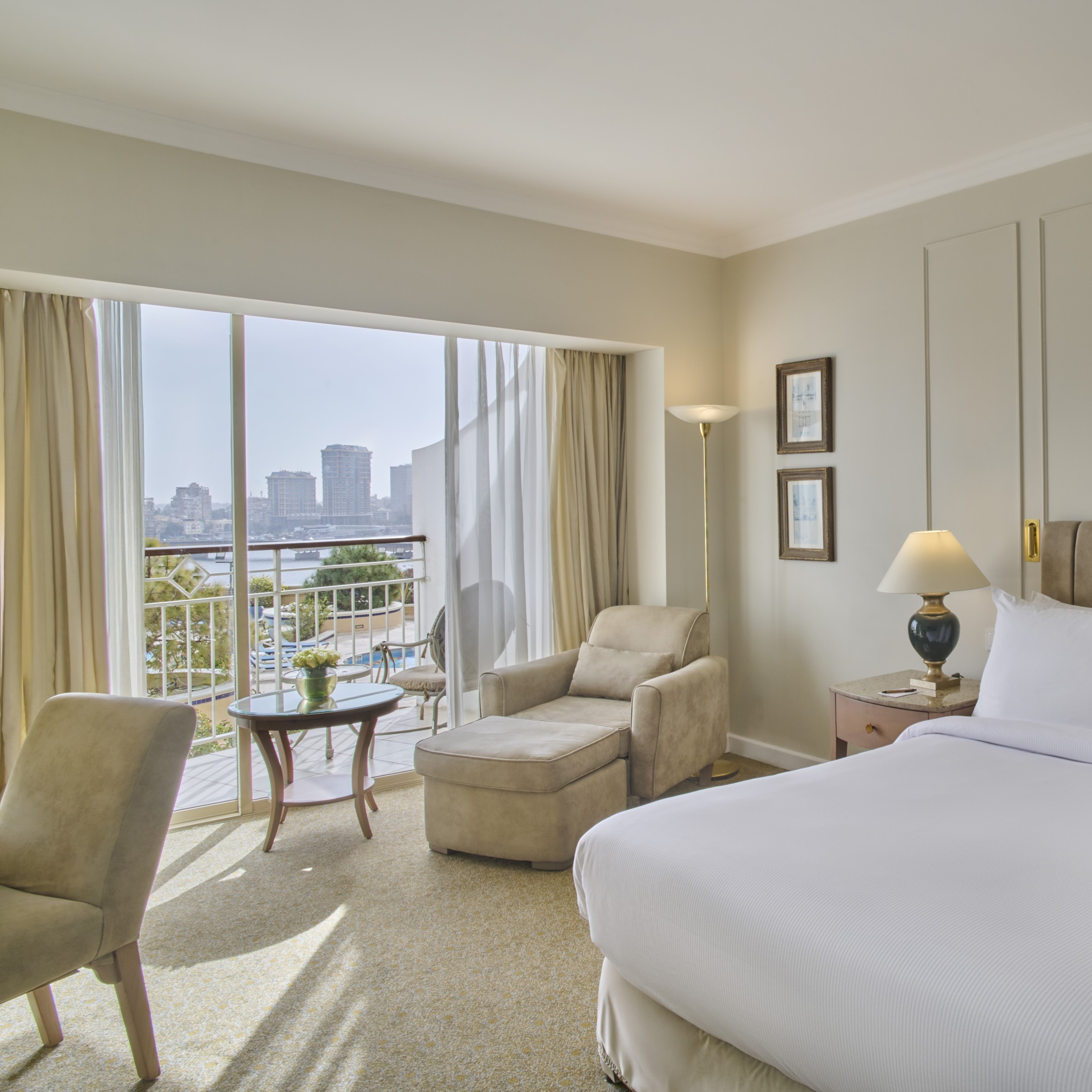 Perfectly located in the heart of Cairo, our hotel offers breathtaking views directly over the majestic Nile River. Just minutes away, guests can explore iconic cultural and historic landmarks such as The Egyptian Museum and the Cairo Opera House, both within two kilometers. Designed for both leisure and business travelers, we feature versatile event spaces and exceptional dining experiences — from our floating restaurant aboard the Marquise cruise boat to the city’s only revolving restaurant with panoramic skyline views. Please note, our property is an alcohol-free hotel, ensuring a family-friendly and serene atmosphere.